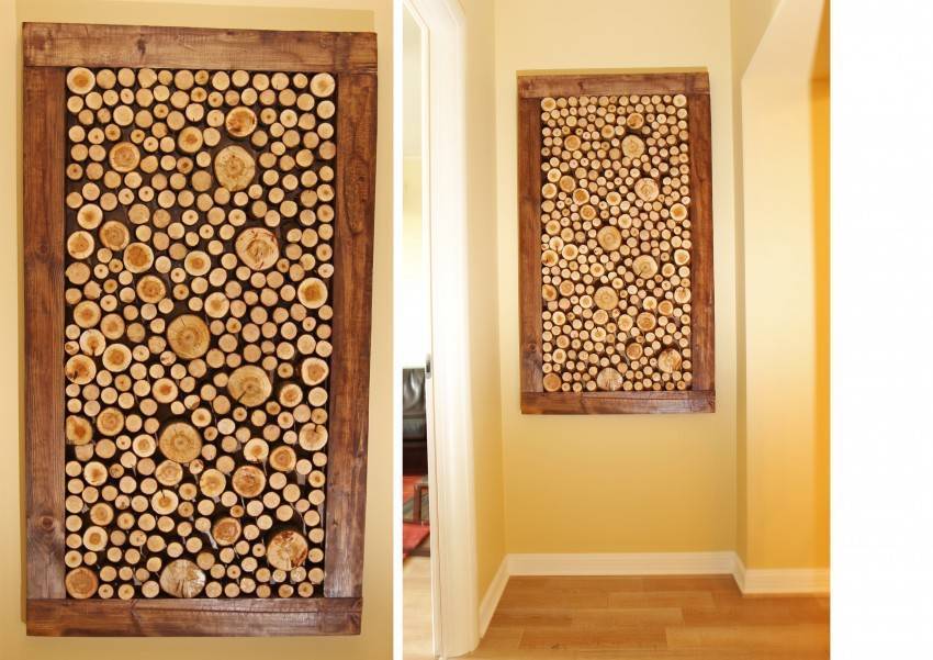Модно будут смотреться склеенные между собой бруски из дерева круглой формы, но разного размера. Такие идеи особенно подходят для преображения частных домов и дачных объектов.