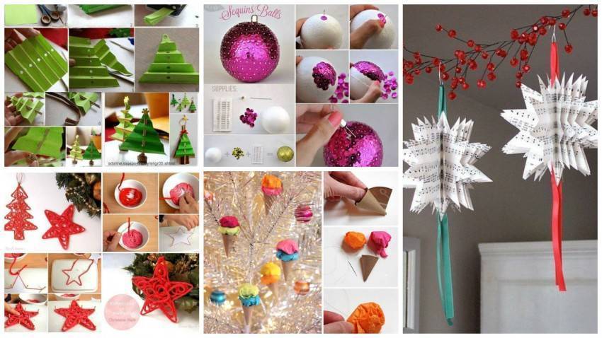 Поделки для дома на Новый год своими руками создаются из всего, что найдется под рукой: для изготовления елки подойдет картон и мишура, сказочных героев можно создать из старых носков, снежинки сделать из салфеток, бумаги, фольги, карамели, теста, шоколада.