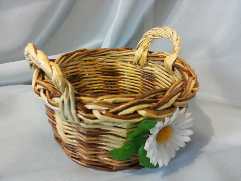 Берем длинную шпажку и накручиваем на нее часть газетки. У нас получится довольно длинная и тонкая трубочка. Выпирающую часть газетки приклеиваем к основанию. Приминаем ее ножницами, чтобы трубочка была плоской.