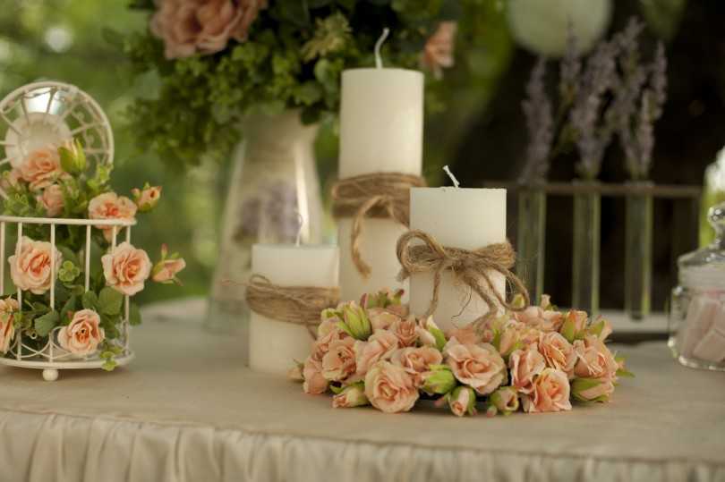 Так красиво использовать в саду свечи, но их постоянно задувает ветром. Чтобы такого не происходило, можно сделать подсвечники из пустых консервных банок или из обычных стеклянных. Можно все украсить камешками или лентами по желанию.
