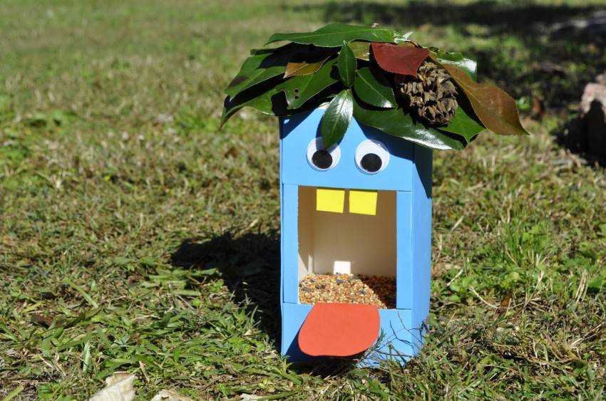 Нашего доброго и забавного «Лешего» можно считать полноценной детской поделкой из коробки. Птицы или белки обязательно оценят это творение и будут с удовольствием посещать друга как можно чаще.