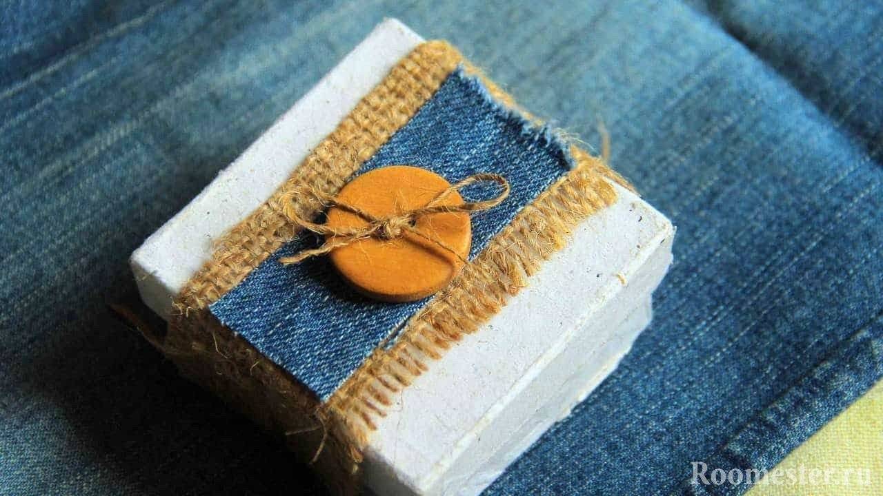 Для оформления можно применить подарочную бумагу, кружево или плотную ткань, к примеру льняное полотно или джинсу.