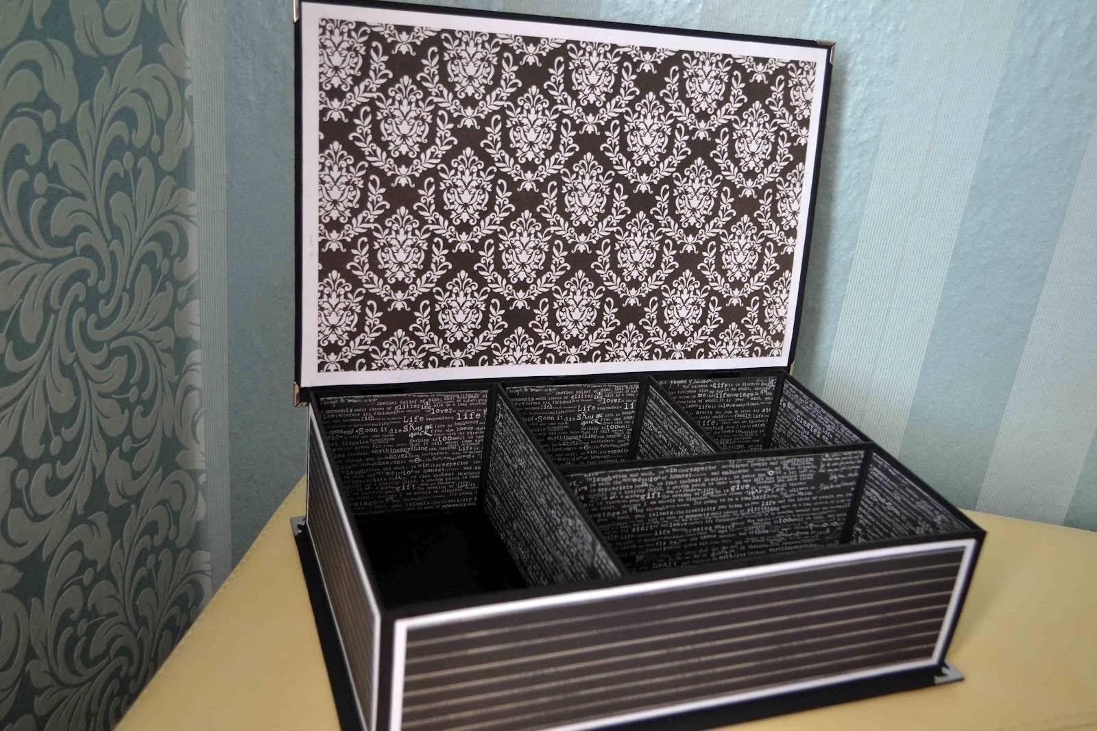 Преображенная своими руками и красиво украшенная коробка еще не один месяц послужит в качестве «хранилища» всевозможных мелочей.