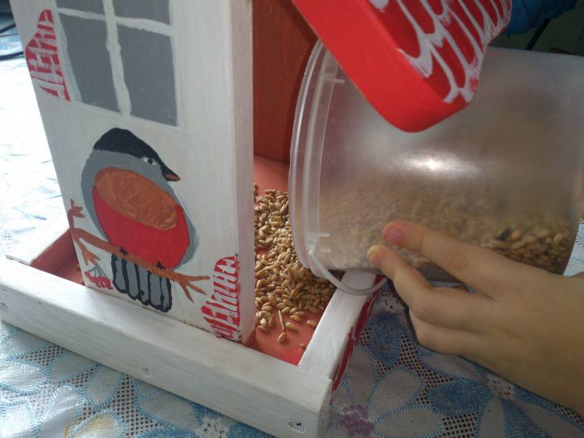 Внутрь открытого «рта» насыпаем зерно, семечки и выставляем в городском парке под красивый куст или дерево.