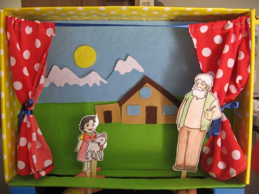 Каждого героя сказки нужно наклеить на деревянную шпажку. Затем через дырочки в коробке нужно поместить гирлянду. Такая поделка из коробки подойдет детскому саду или школьникам начальных классов.