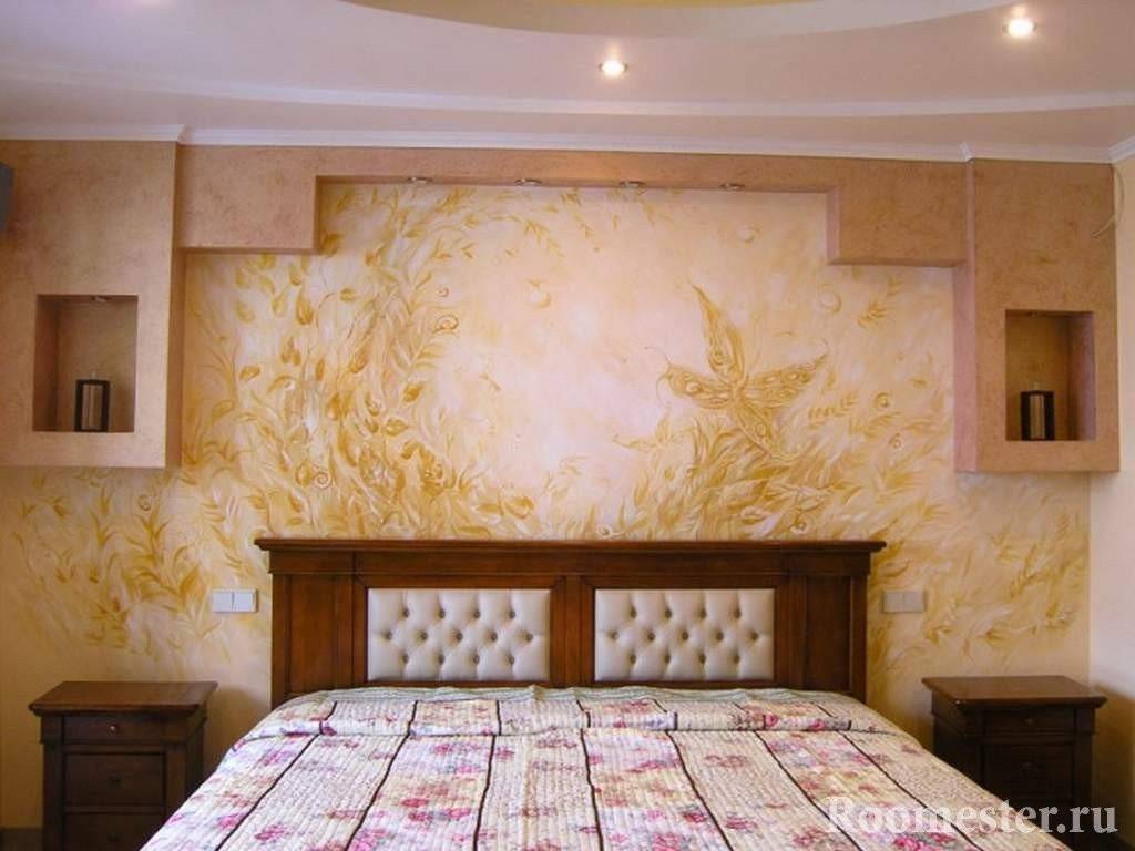 Необычная отделка стены в спальнеИсточник domoholic.ru