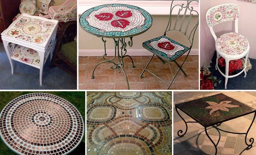 Если вам не подошёл ни один из выше перечисленных способов декора кофейного или журнального столика, обратите внимание на следующие необычные способы. Оригинально украсить поверхность любого столика можно с помощью керамической плитки