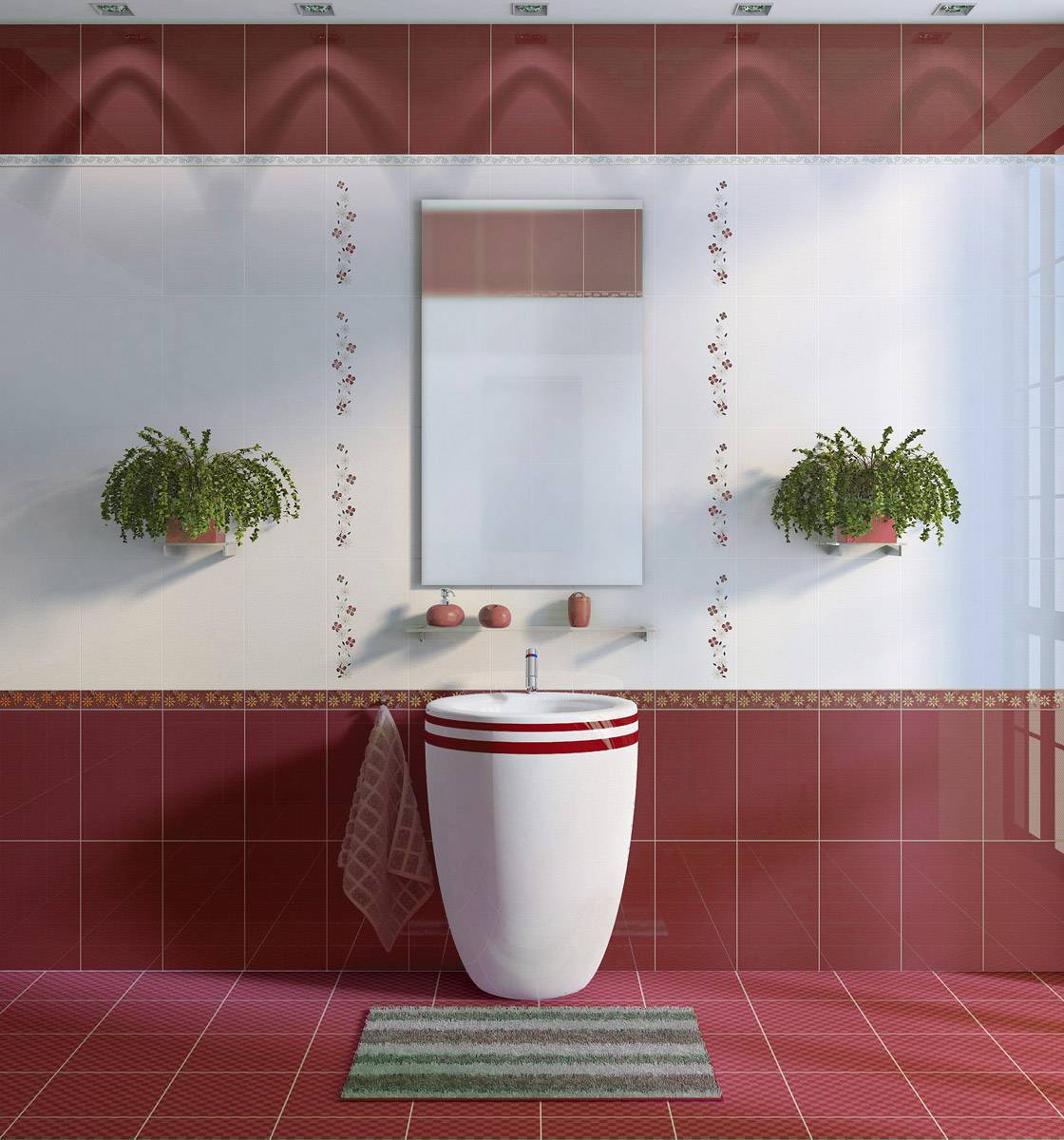 Красный сужает пространство и способен уменьшать предметы на своем фоне. Это означает, что для миниатюрных пространств такой вариант оформления не подходит, т.е. в малогабаритной ванной красный лучше не использовать. В противном случае он просто «раздавит» вас, не оставив шанса на мирное сосуществование. Количество этого цвета прямо пропорционально зависит от габаритов комнаты – в маленькой ванной можно использовать красный точечно, в средней – 50% всей площади, а в просторной можно хоть все поверхности отделать этим цветом (вопрос только в целесообразности такого шага).