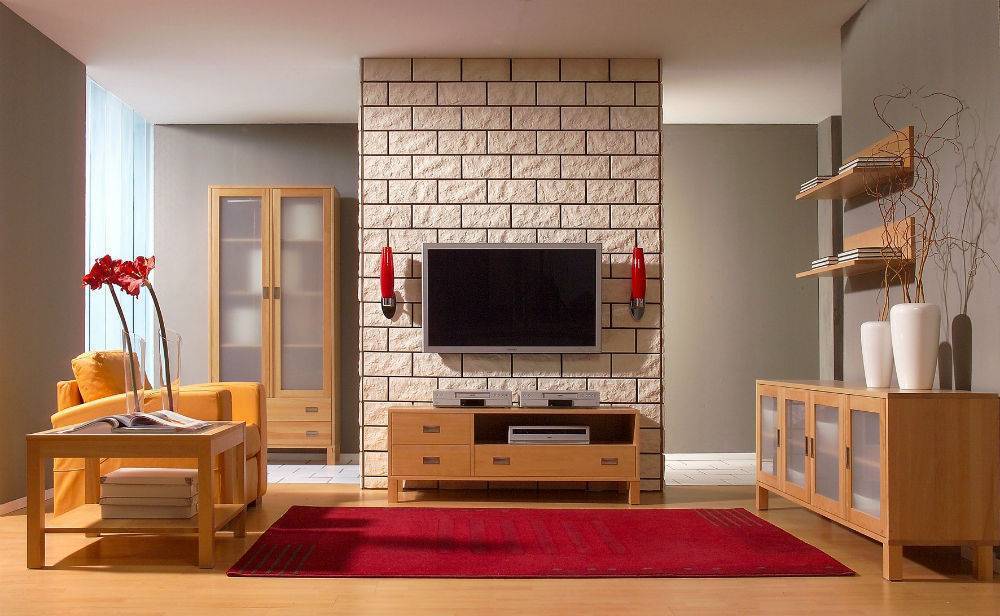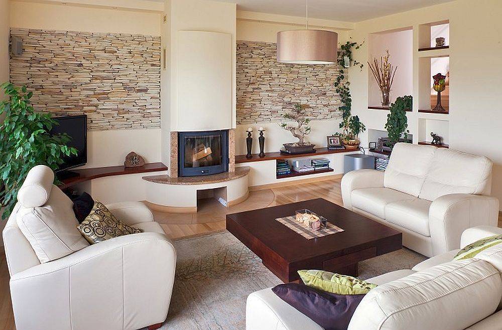 Гостиная с камнем на стене — какой материал выбрать? Отделка стен под камень