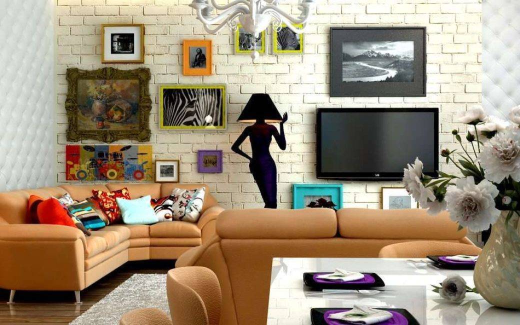 Оформить стены зала в «каменном» стиле – неординарное и самобытное решение. От того, какой выбран материал, зависит: