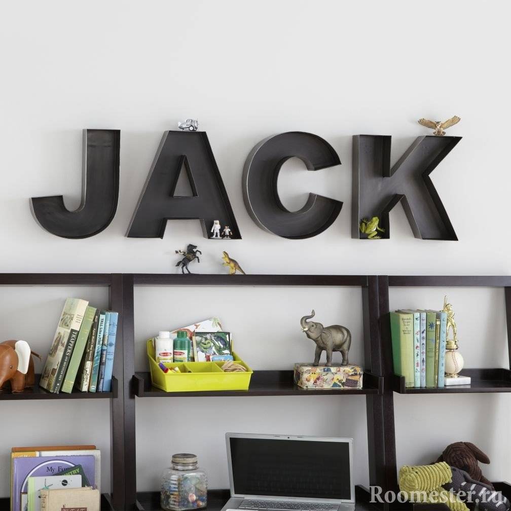 - расположение заглавных букв, отдельных фраз и длинных выражений. Такой декор будет персонализировать дом, отличать его от жилищ других людей. В комнате ребенка можно использовать также целые слова в интерьере. Над кроватью, на двери или над столом можно разместить имя владельца помещения. Любимые фразы, высказывания, буквы имен каждого жителя будут придавать эмоциональную окраску, способствовать сплочению всех членов семьи.