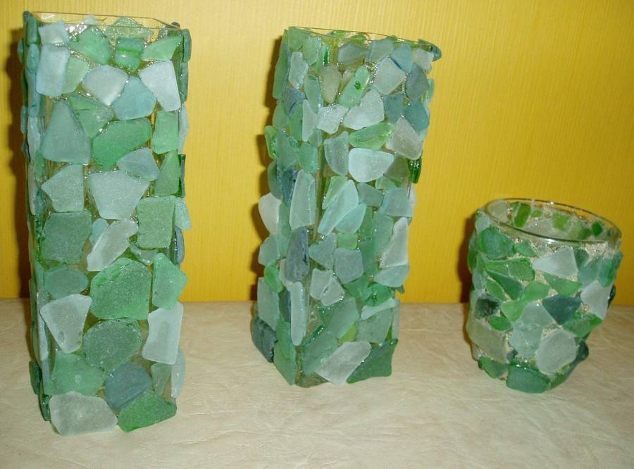 Видите как много у вас, скажем в гостиной предметов декора – ваз, рамок, часов и т.д.? Попробуйте украсить их кусочками разбитого стекла и вы удивитесь, как это красиво на самом деле.