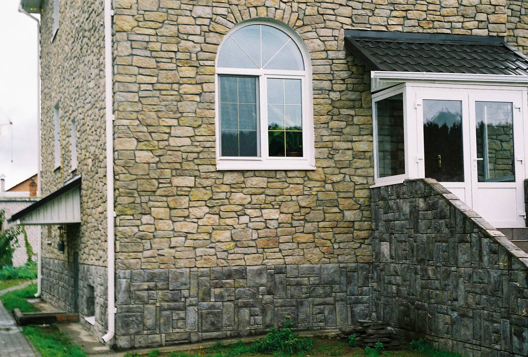 Отделка цоколя искусственным камнем на плиточный клей