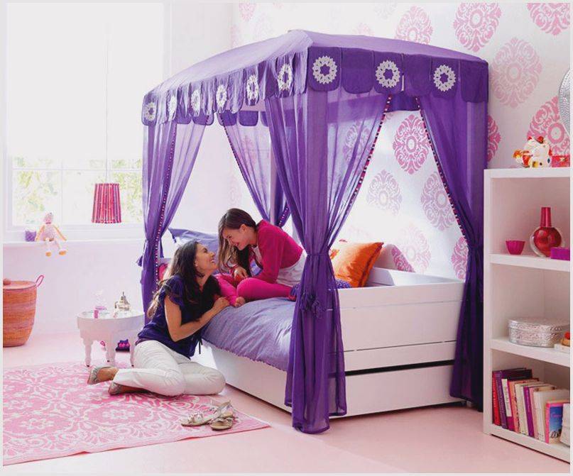Кровать с пологом в комнате девочки