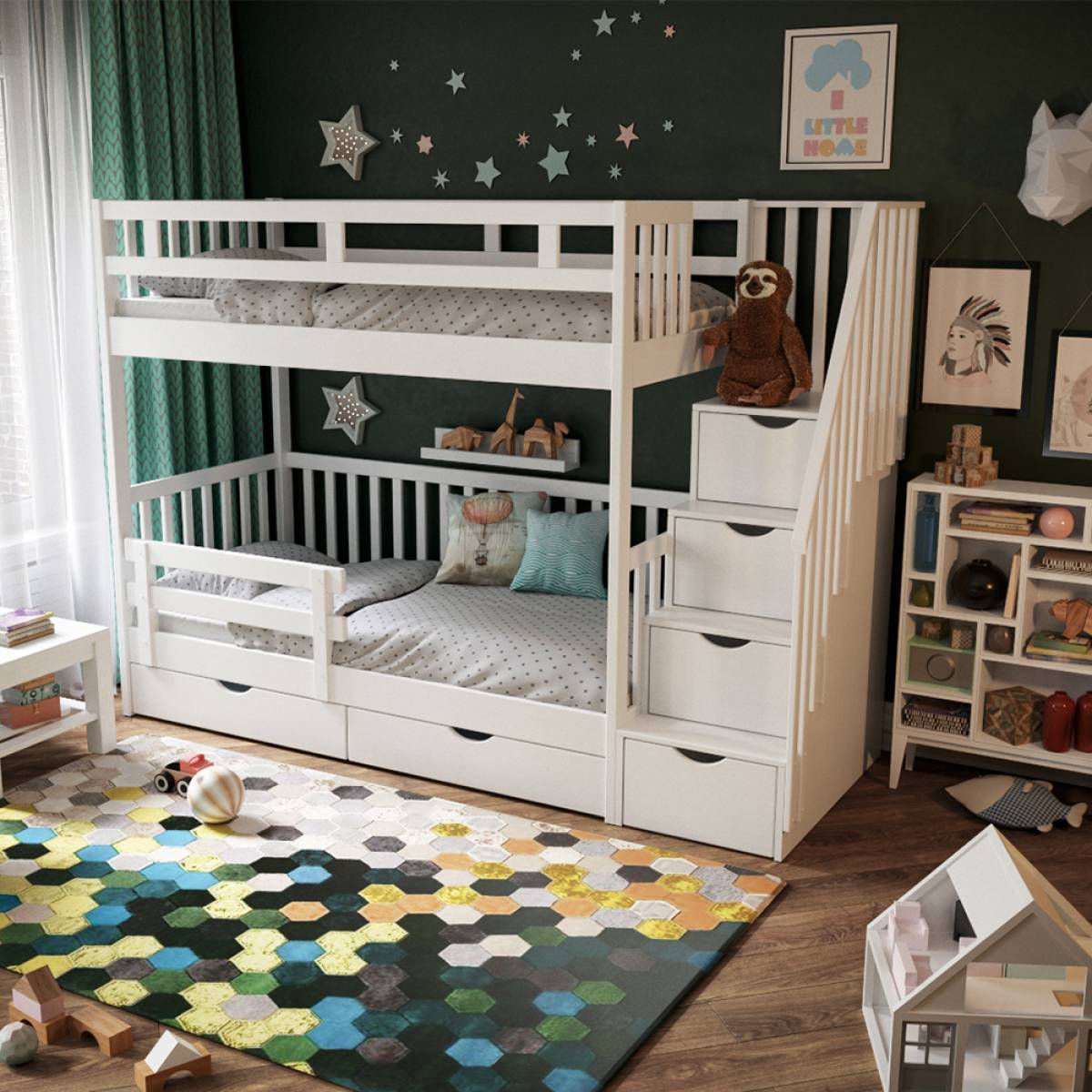 Приобрести двухъярусную кроватку с ящиками и другими необходимыми для детей элементами (лестница, стол и др.) просто.