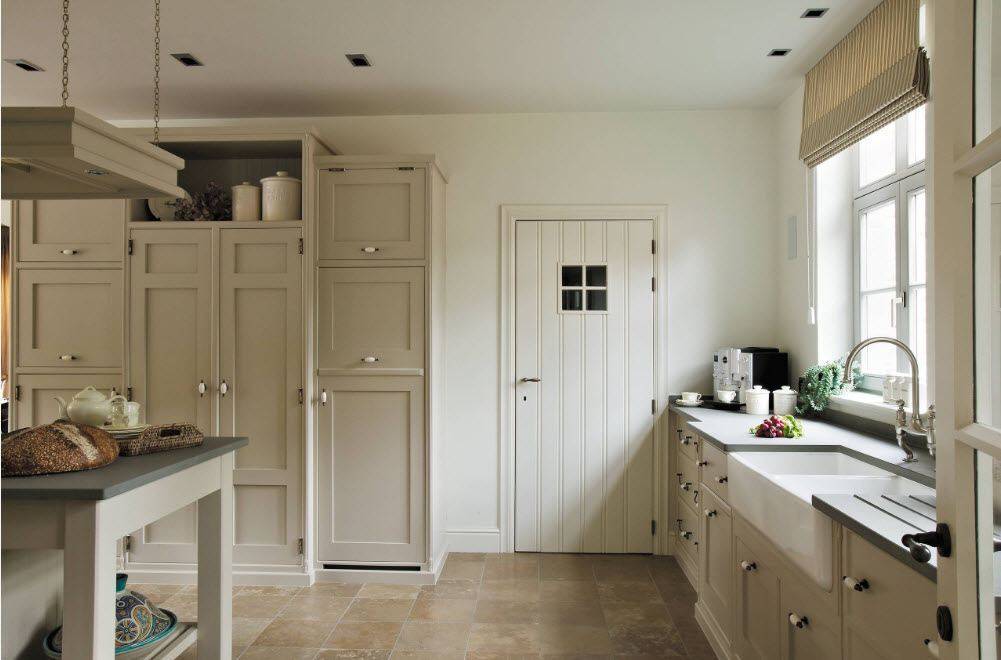 Если покрыть пол на кухне кафельной или керамогранитной плиткой, то этот вариант будет практичным. Для этих целей подходит светло-серый, светло-коричневый и бежевый тона. Облицовочный напольный материал должен напоминать дерево. По возможности делают так, чтобы искусственный пол слабо отличался от натурального.