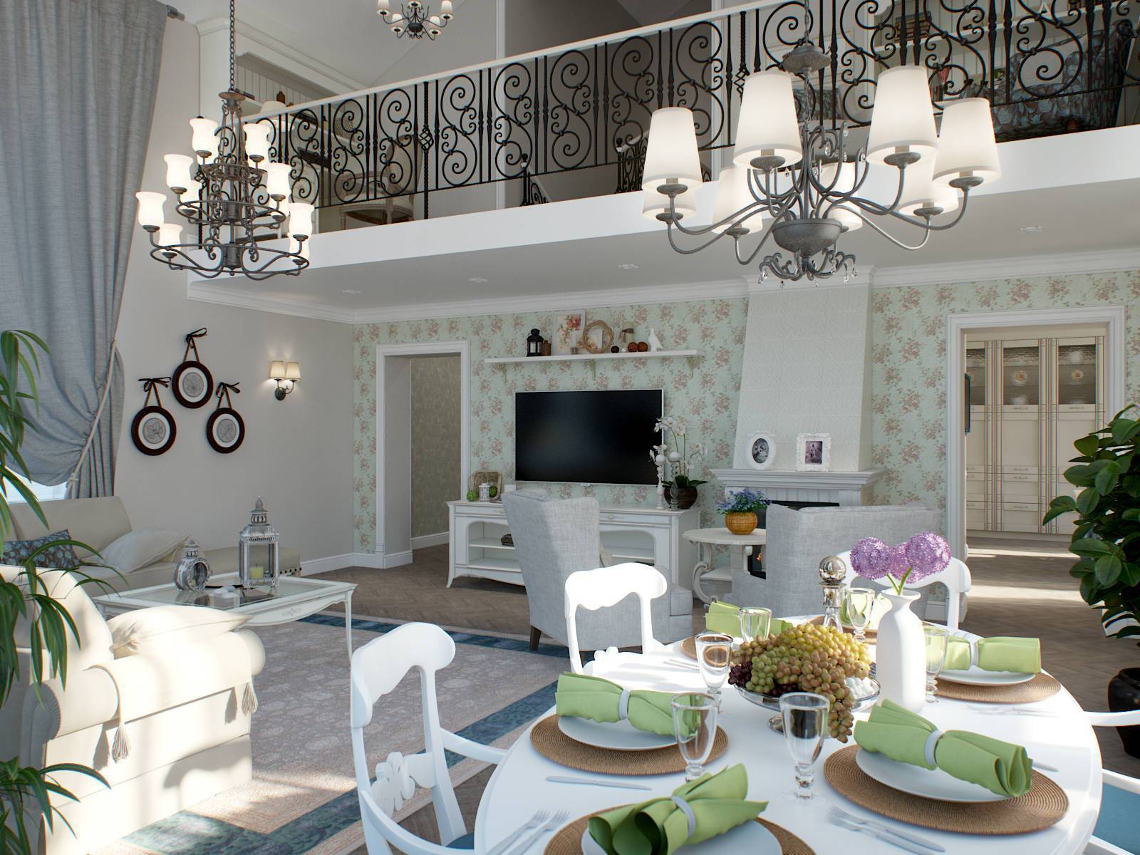 Дополнить интерьер рекомендуется декорами в виде: развешанных на стенах декоративных тарелках с росписью, комнатными вечнозелеными растениями, аксессуарами из бусинок. Красивый светильник с торшером, украшенным цветочными мотивами, неотъемлемый атрибут стиля прованс. Идеальным цветовым решением станут: белые, розовые и фисташковые оттенки.