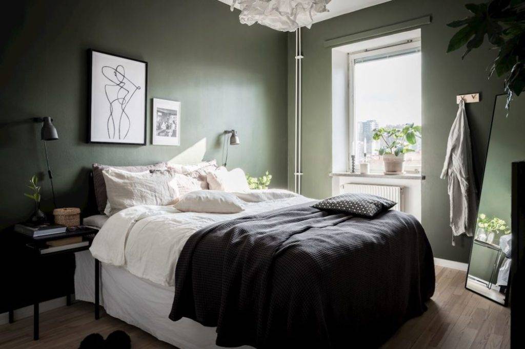 Если вы хотите, чтобы зеленый цвет в спальне был первым, который бросается в глаза и выбирает расположение, выберите этот цвет для стен. Вы можете выбрать краску, но следите за освещением, особенно если вы планируете использовать оттенок бутылочного зеленого. Некачественная подготовка может создать зазоры даже после нескольких слоев.