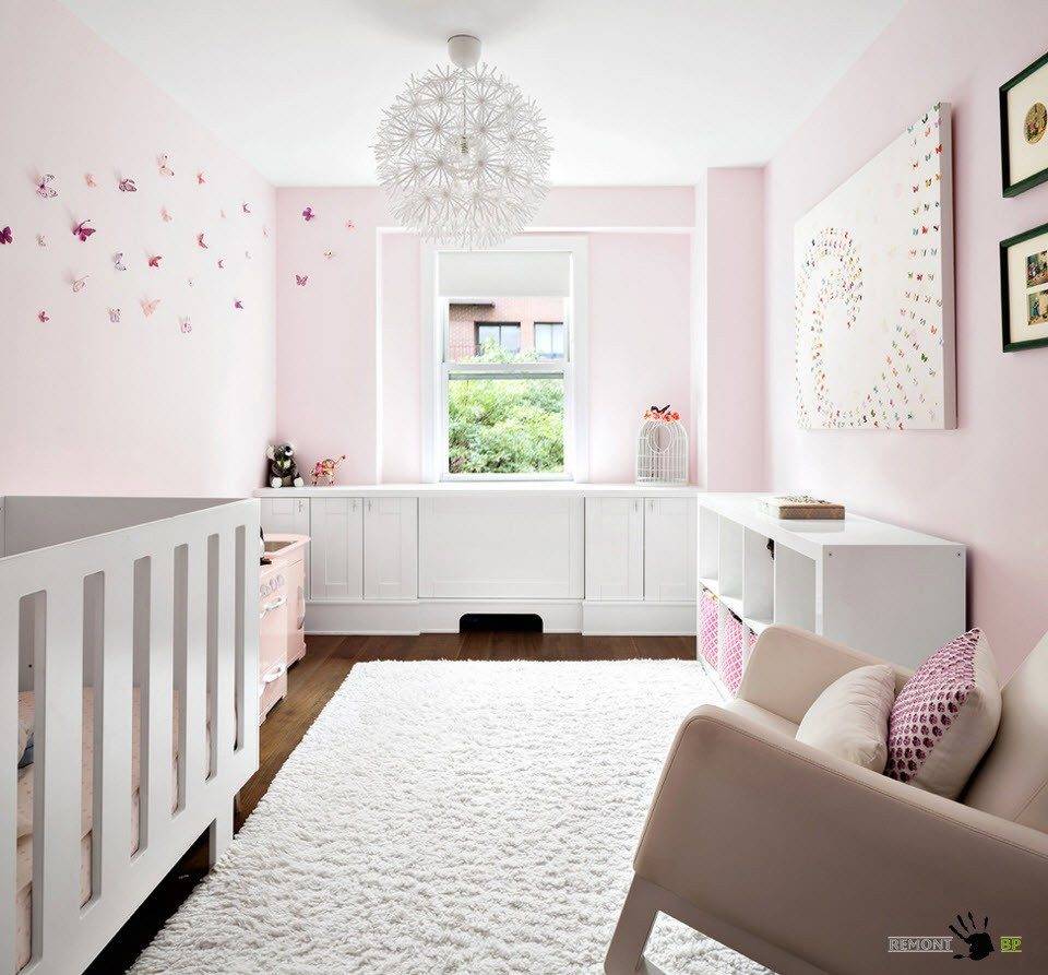 Простая меблировка в комнате новорожденной девочкиИсточник pinterest.se