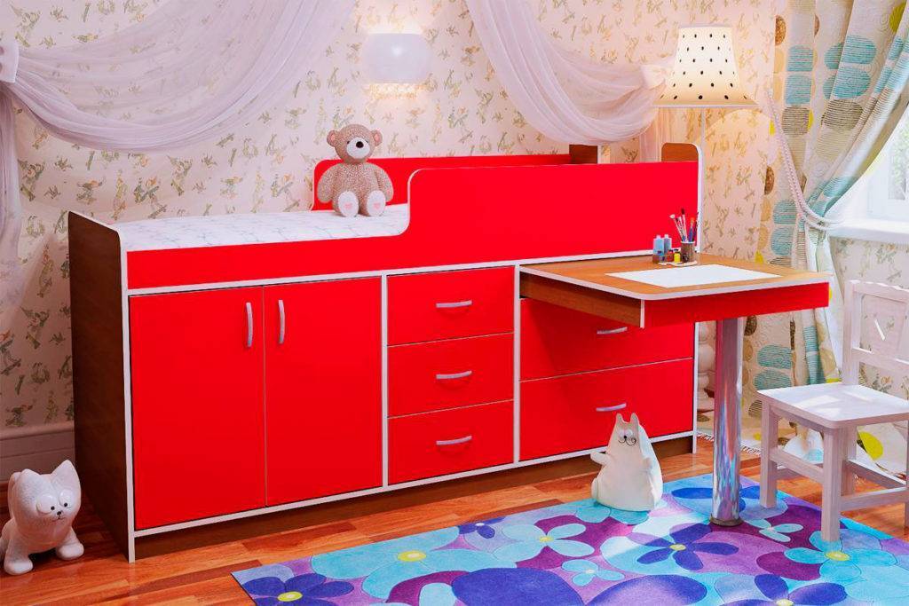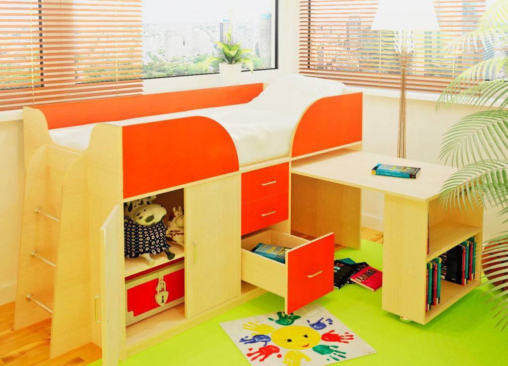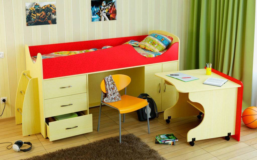 Если вы ищете обширный предмет мебели для одного ребенка, то вам точно понравится модель со встроенным письменным столом. Ее структура разработана так, что вмещает все элементы, которые нужны в небольшом пространстве. Обычно в верхней части располагается постель, а в нижней — раскладной столик или дополнительный диван. Такое решение позволяет организовать пространство небольшой комнаты так, чтобы оставалось место для игрового уголка.