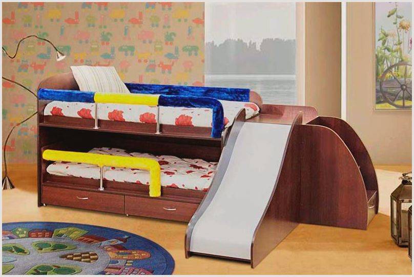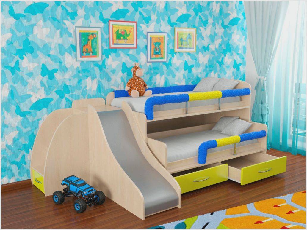 Потому как оба яруса кровати являются жилым, именно горка будет важным компонентом игровой площадки. Традиционная кровать в два яруса с горкой станет самостоятельным интерьерным элементом и интересной деталью для обустраивания маленькой комнаты.