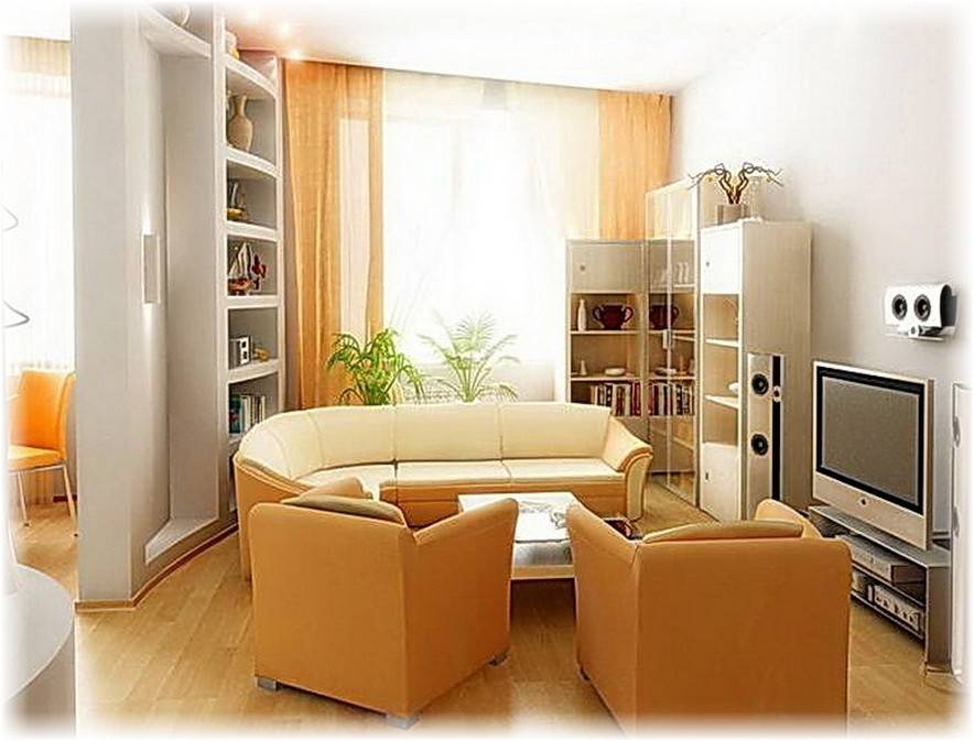Использование в интерьере светлых тонов поможет зрительно увеличить пространство небольшой гостиной