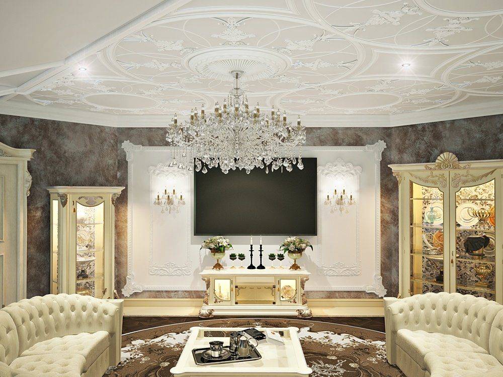 На потолке широкий плинтус, как в роскошных античных интерьерах