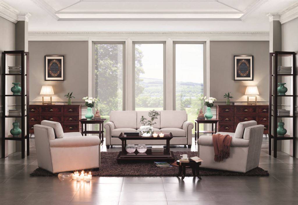 - Прямой. Универсальная модель, которая подойдёт как для просторных, так и для маленьких гостиных. Стандартные варианты рассчитаны на 2-3 посадочных места. Для частых встреч с друзьями купите к софе кресла.