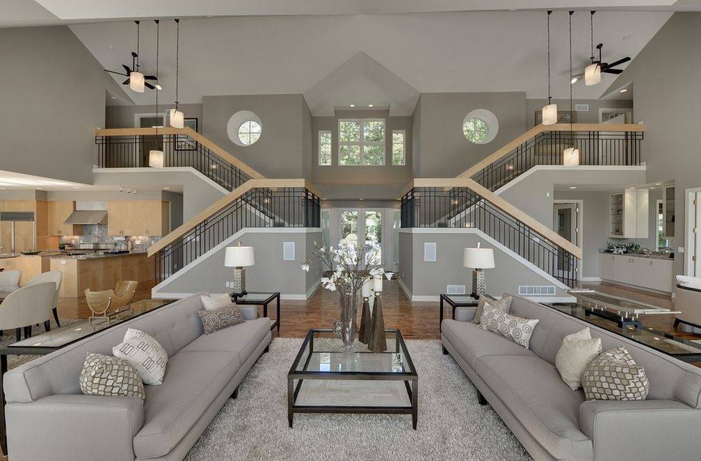 При этом важно учитывать дизайн и первого, и второго этажа. Оптимальным решением будет объединение элементов двух помещений с акцентом именно на гостиную.
