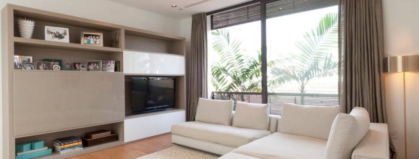 - Комната должна быть светлой, тяжелые портьеры заменяют на тюль, жалюзи, римские или нитяные шторы.