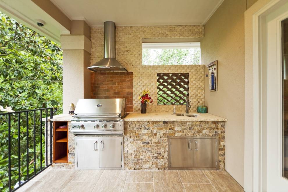 Также возможно переоборудовать это пространство под комфортабельную барбекю-зону. Отличный вариант для частного дома. Шикарным декоративным элементом здесь может стать камин. При таком оформлении уместными будут раздвижные стеклянные двери. Летом они помогут наслаждаться природой и свежим воздухом, а в холодные время защитят от сквозняков и непогоды.