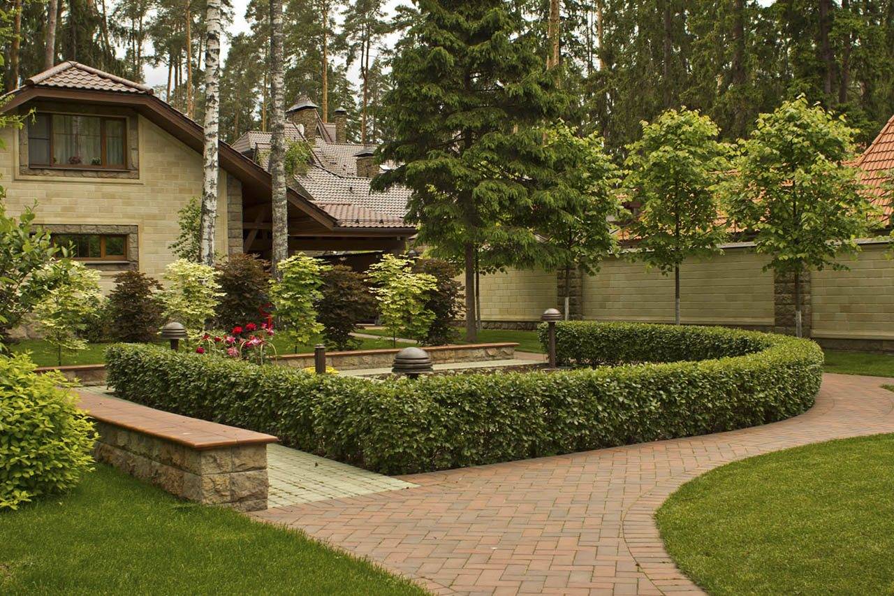 Линейные мотивы общей картины оформления изгороди, области отдохновения выражены элегантностью простоты, строгостью форм. Ухоженные растения завершают четкость, лаконичность линий.