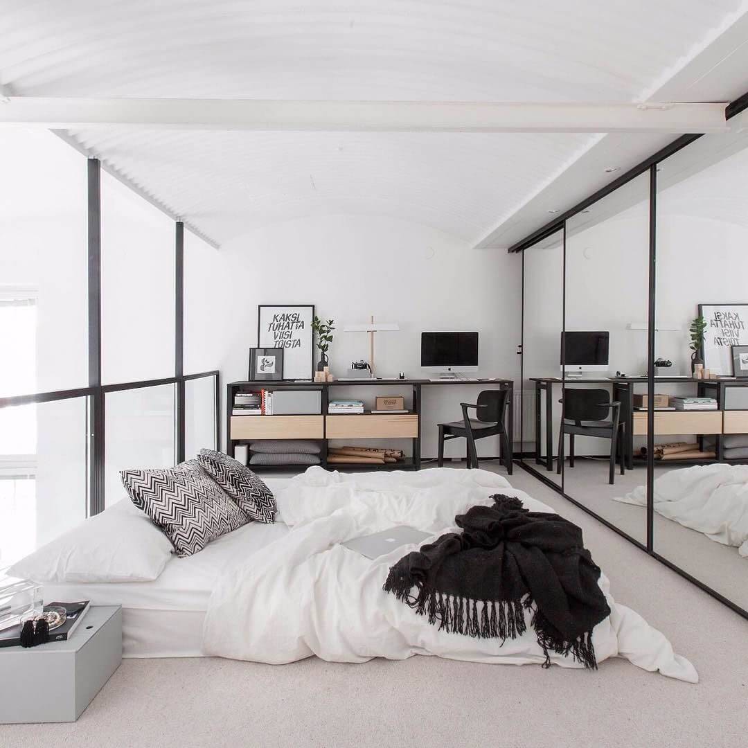 Для скандинавского стиля тоже характерен минимализм. Минимализм даже является его частью. Скандинавский стиль – это интерьер спальни с белой мебелью. Дизайн белой спальни с деталями чёрного цвета и правильными формами, функциональная и удобная мебель, вязаная дорожка, рамки из дерева, близость к природе, – всё это отличительные признаки скандинавского стиля. Скандинавы исходят из умеренности, комфорта и следования природе.