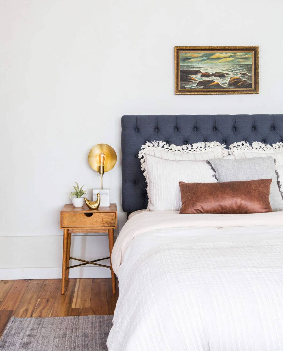 Акценты могут быть не только явными, но и подчеркнуто скромными (неброский рисунок на текстиле постельного белья или пледа, декоративных подушках, шторах, элементах картины и даже свеч).