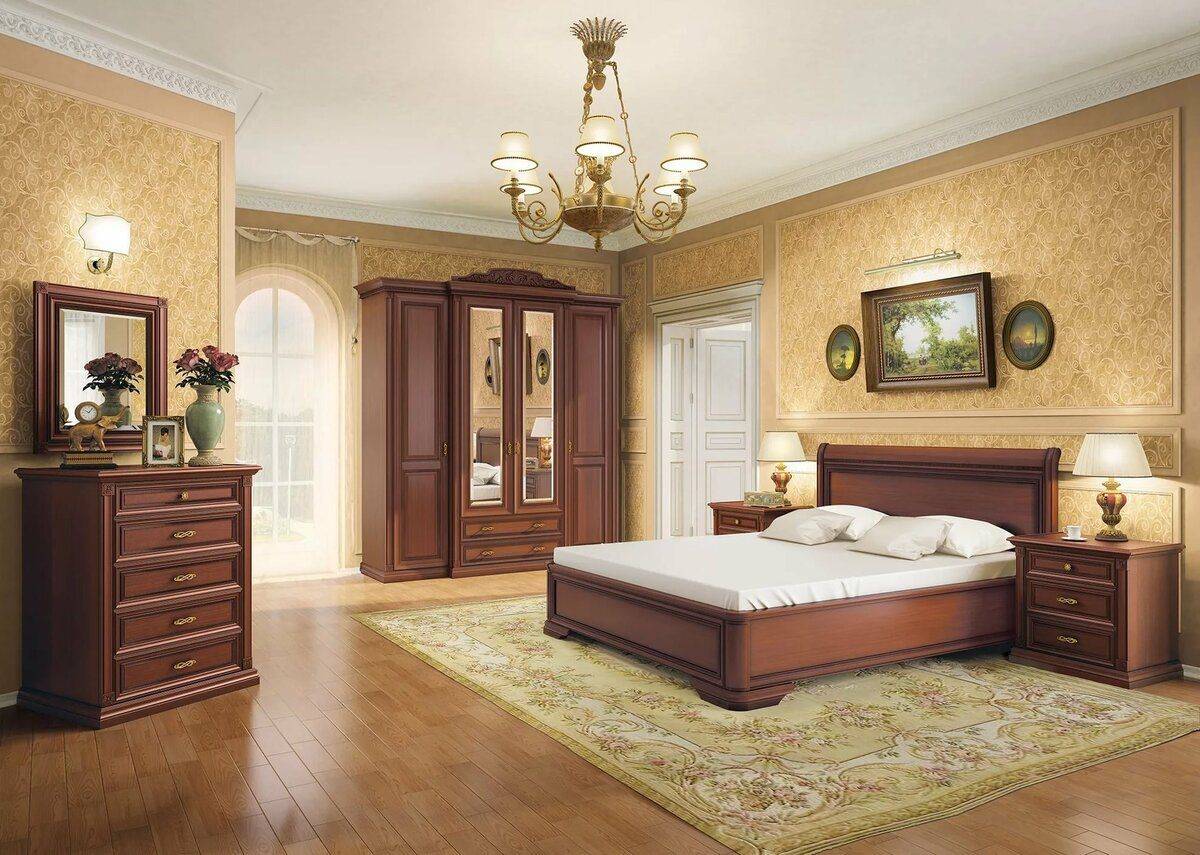 Выбирая мебель, лучше всего остановиться на гарнитуре, чтобы все предметы идеально подходили друг к другу. Шкаф, комод, кровать должны быть выполнены из натурального дерева. Натуральные материалы – это в принципе важный пункт для создания классического интерьера. При оформлении помещения можно украсить потолок лепниной, выбрать гармоничные декорирующие элементы: вазы, красивые светильники, канделябры, статуэтки.