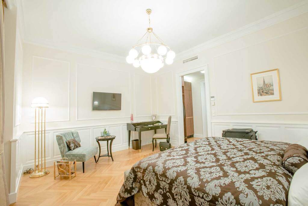 С другой стороны, спальня, стилизованная под классический или неоклассический стиль, будет значительно отличаться от стандартных комнат. В связи с этим комнаты отличаются уникальным расположением, которое проявлялось в богатстве украшений, позолоты, а также в насыщенных цветах. Ранее классицизм удачно сочетался с чертами барокко. В настоящее время классические спальни, вдохновленные временем прошлых лет, чем-то напоминают палаты дворца. Большая кровать в классическом стиле со стеганными изголовьями, люстрами, настенными светильниками, плотными тканями, туалетными столиками, комодами — это лишь некоторые из признаков классицизма в дизайне интерьера.
