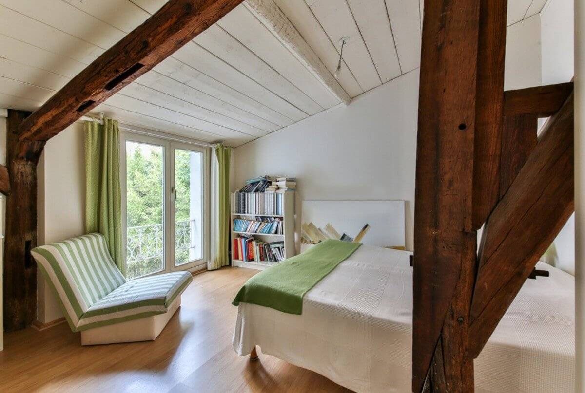 Напольное покрытие из дуба — это только одно из многих решений — экзотические породы также будут идеальными. Они достаточно долговечны, чтобы их часто выбирали даже для кухни или ванной комнаты. Спальня в зеленом цвете благодаря деревянному полу подойдет людям с аллергией — натуральный материал не притягивает пыль. Однако, если вы боитесь возможных царапин или у вас нет бюджета на отделку из натурального сырья, выберите панели.