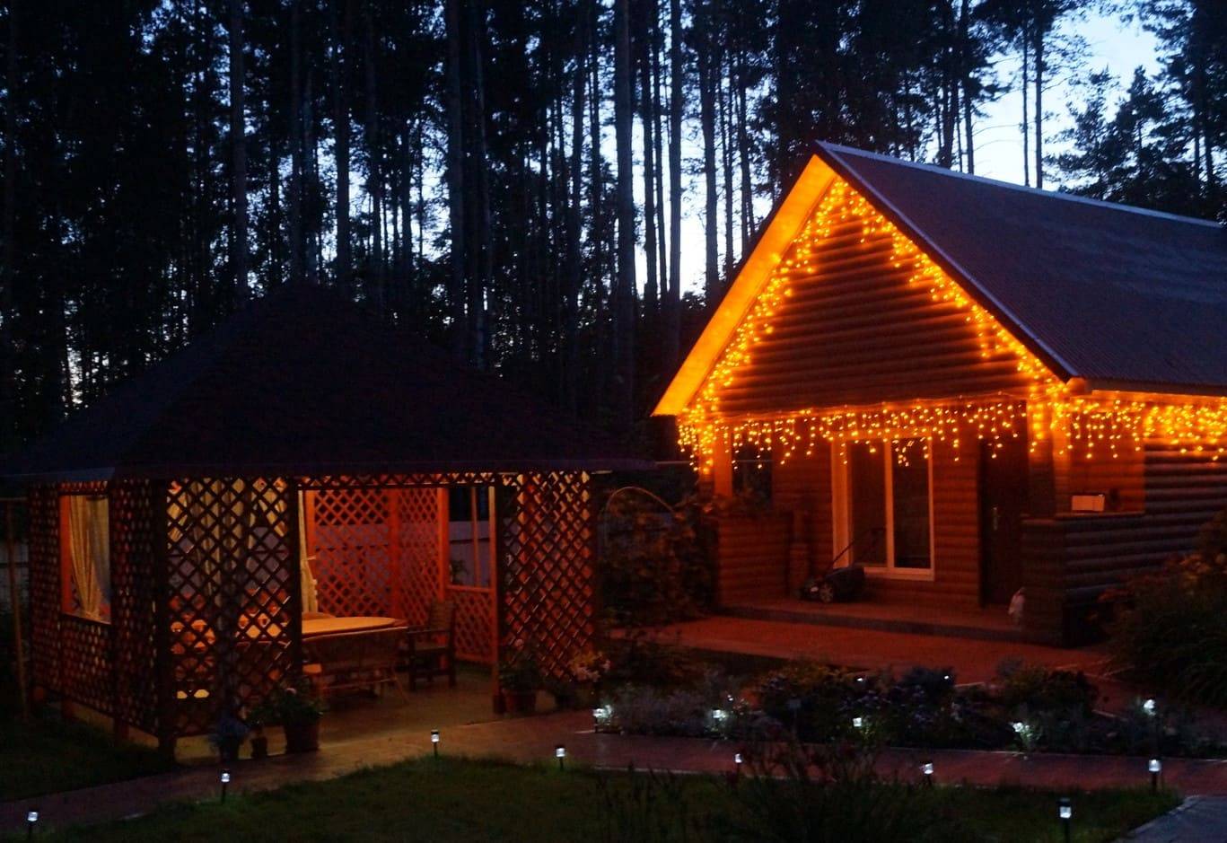 Основательные закрытые или «зимние» беседки пока что редкость. Но все зависит от фантазии строителя или дизайнера. Превосходно будет смотреться небольшой «домик тролля» (или гнома) на участке в скандинавском стиле, со всем декором и мифической атрибутикой. Внутри может быть настоящий очаг (печь или камин), столик, табуреты и лежанка.