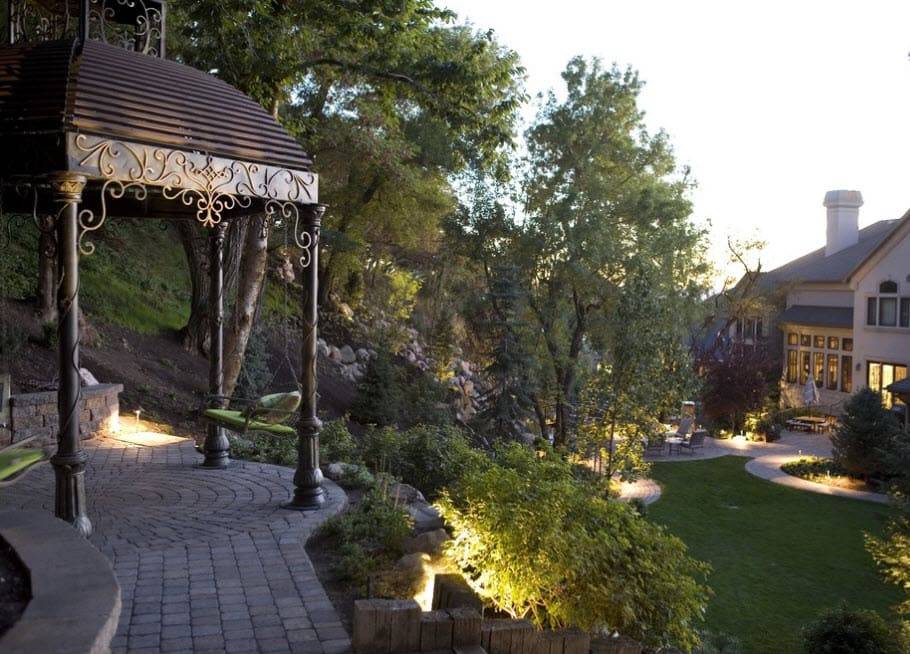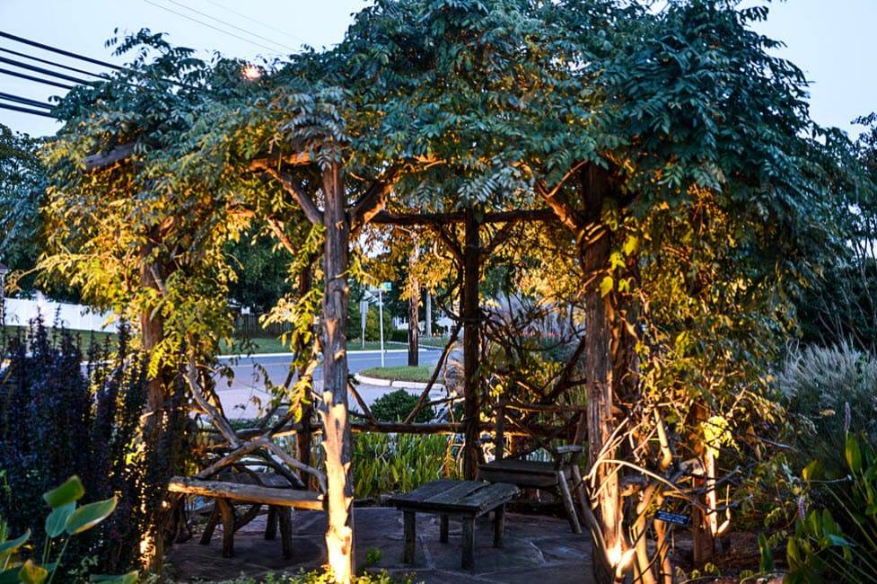 Колорит ландшафтного дизайна с беседкой во многом зависит от типа постройки и общего стилистического решения. Для постройки своими руками обычно выбирают конструкции, которые легко самостоятельно собирать из готовых деревянных блоков или сварить из металлических решеток и столбов.