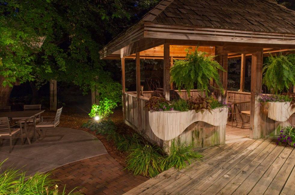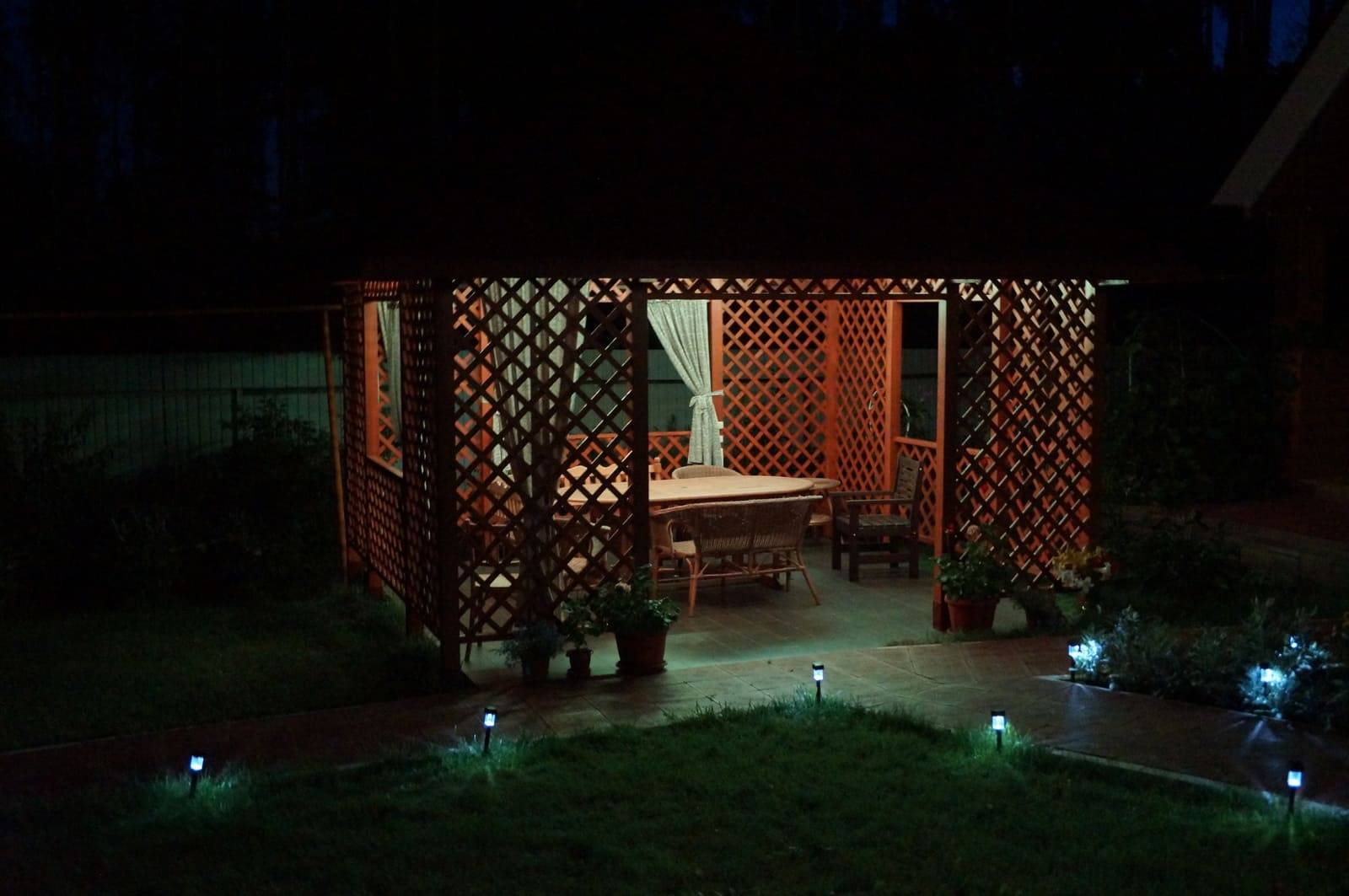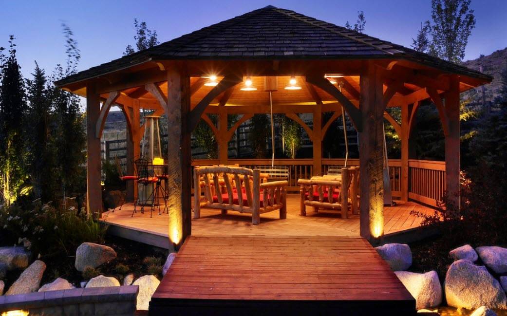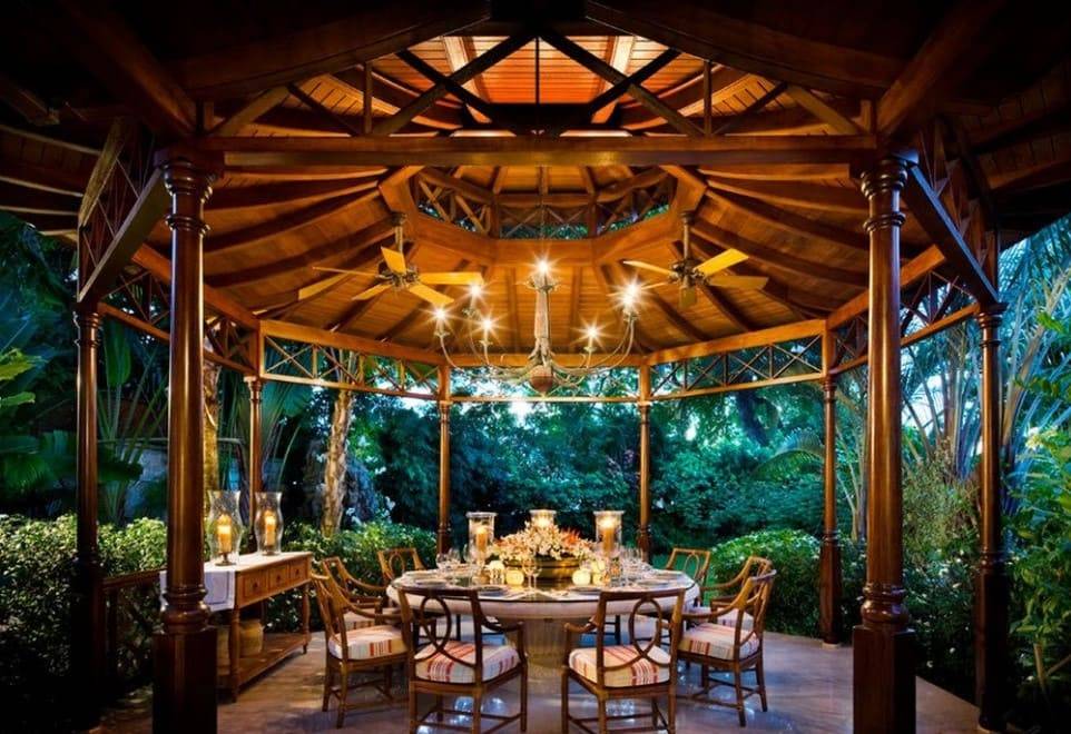 Декоративные полочки, маленькие шкафы и тумбочки придадут постройке домашней атмосферы, создадут дополнительный уют. В выборе мебели главное – почувствовать предел и не переборщить. Еще следует помнить о гармоничном наполнении и стилевом оформлении. В декорировании нельзя забывать об осветлении беседки. Это могут быть настенные бра, точечные фонарики или лампа с абажуром в центре.