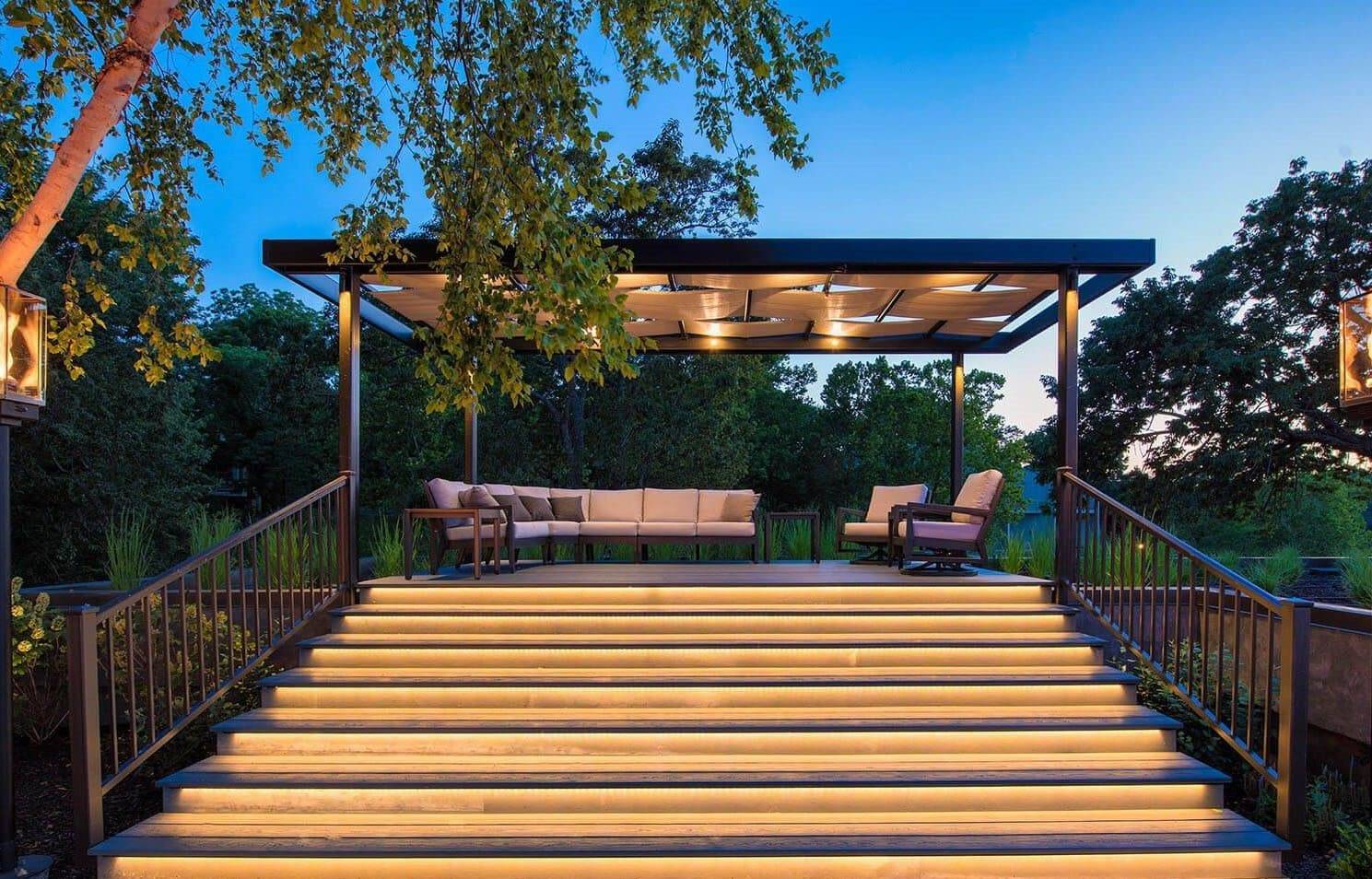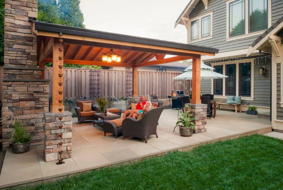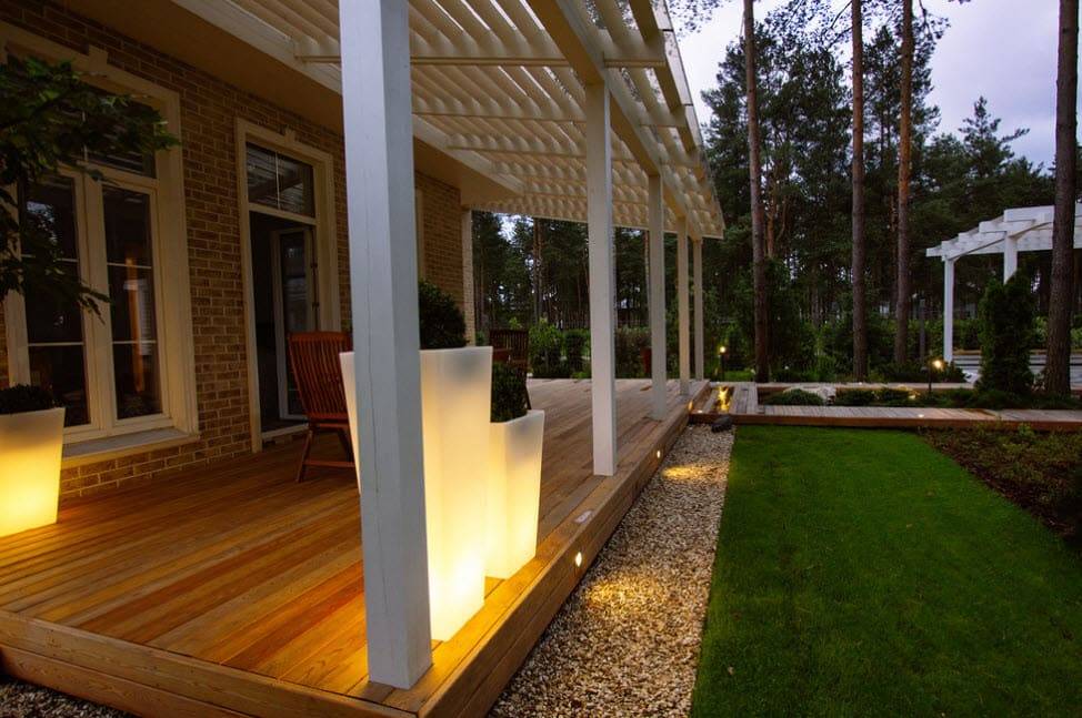 - Квадратные или прямоугольные. Более строгий тип беседок, который подходит для сдержанных стилей (минимализм, японский).