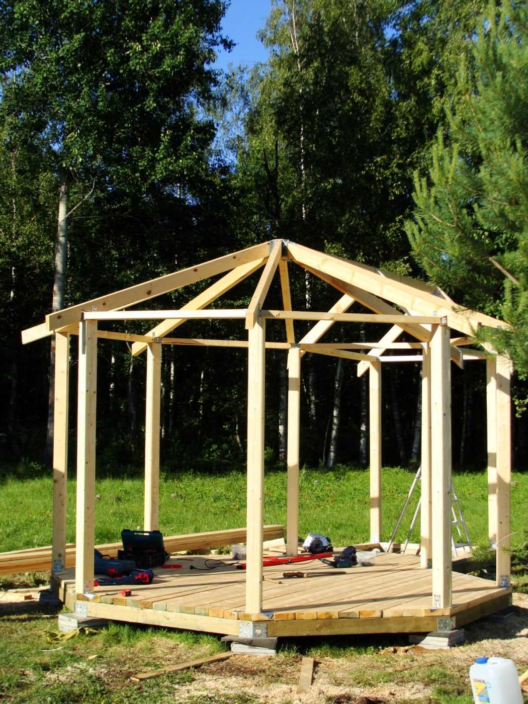 Беседка служит небольшим временным укрытием. Целевая аудитория часто считает это сооружение легким проектом. Тем не менее, пошаговая инструкция при возведении даже такой конструкции всегда актуальна: