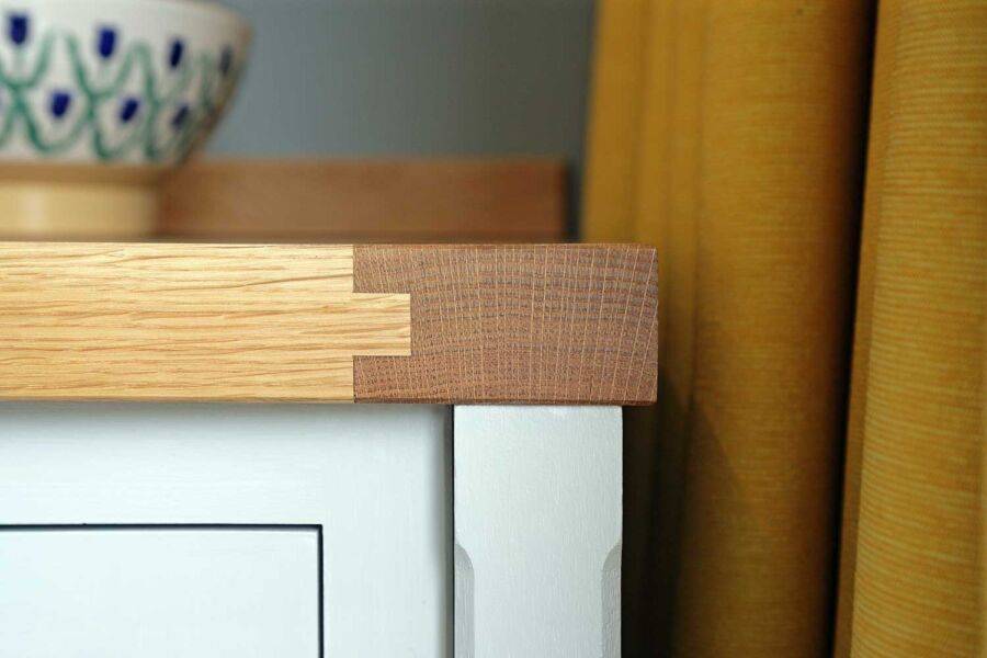 Хорошо смотрятся гарнитуры из вишневой, дубовой древесины. Техника кракелюр состарит дерево трещинками и сколами.