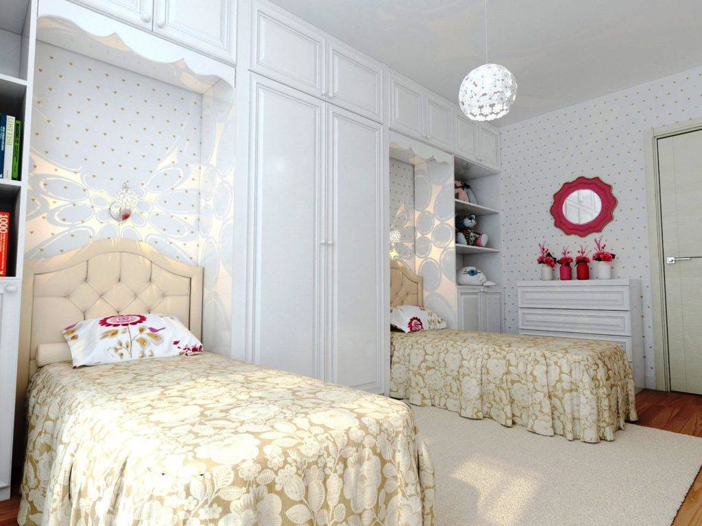 - Использование разных стилей. Каждая из частей, принадлежащих сестрам, должна быть оформлена с ярко выраженными особенностями. Различия в элементах декора, обоях и мебели — основной способ разделения комнаты. Но помимо него должны быть и схожие элементы, которые объединят два дизайна в неповторимый интерьер спальни.