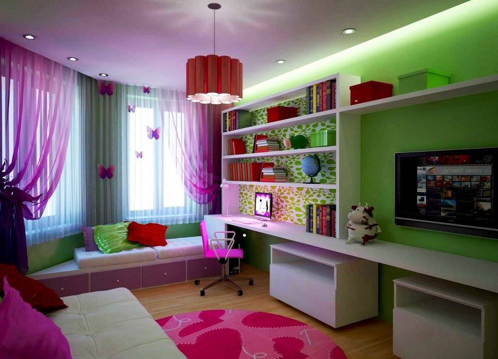 Что касается цветовой гаммы, для интерьера выбирают, как правило, нейтральные оттенки. Резкие и слишком яркие цвета способны быстро утомить и, к тому же, вредят зрению. Однако многие родители идут на смелые эксперименты, что не всегда приводит к хорошему результату. Предлагаем ознакомиться с нашей статьей об интерьере для девочки-подростка, в которой можно найти много интересных решений.
