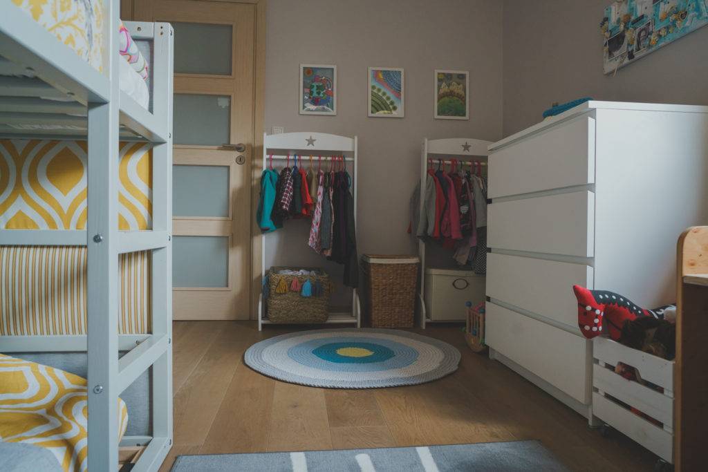 Не стоит забывать о таких прекрасных вещах, как стеллажи и двухъярусные кровати. Лучше перенести массивные шкафы в другую часть квартиры, освободить центральную часть помещения и сделать ее настолько просторной, насколько это возможно. Подобные меры позволят избежать агрессии со стороны детей. Говорят, что тесная заставленная мебелью комната является для ребенка клеткой.