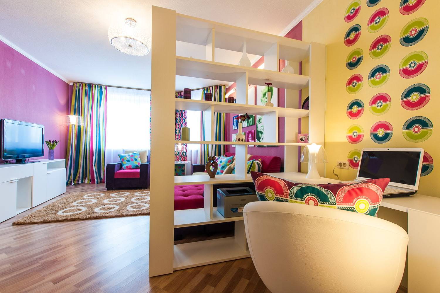 - Разделите пространство двухсторонним экраном — это дешевое решение,