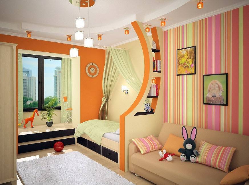 При распределении комнат на стадии ремонта, выбираем комнату с лоджией в качестве детской. Получив разрешение на перепланировку, увеличиваем пространство комнаты за счет сноса стены.