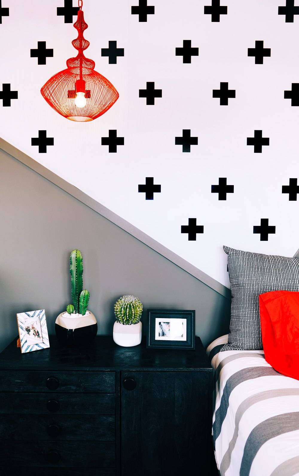 Подчеркните это дополнениями — постерами со спортсменами, пуфами сако, имитирующими мячи, и футболками любимых команд, спрятанными в рамке, которые сделают комнату для братьев обретением оригинального характера.