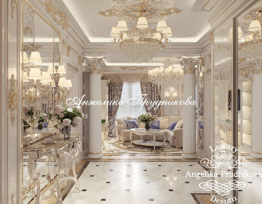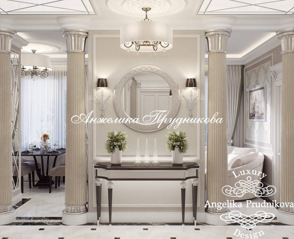 Лепной декор, позолота и колонны с богато украшенными капителями создают в квартире в ЖК «Фили Град» ощущение праздника. А высокие зеркала, многократно отражая эту красоту, превращают современное жилье в подобие королевского дворца.